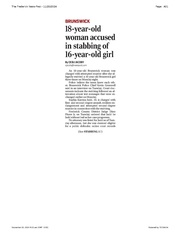 | 09:28, 20 November 2024 | 18-year- old woman accused in stabbing of 16-year-old girl, FrederickNewsPost, 2024.11.20.pdf (file) | 7.58 MB | An 18-year- old woman is accused in stabbing of 16-year-old girl in Brunswick over disputed text messages. Category:Police | 1 | |