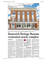 | 08:48, 4 September 2025 | Brunswick Heritage Museum restoration nearly complete, FrederickNewsPost, 2025.09.04.pdf (file) | 3.21 MB | Wallgaier | The city of Brunswick is nearly done restoring the historic facade of the Heritage Museum using two $100,000 state grants. Category: Heritage Museum | 1 | |
