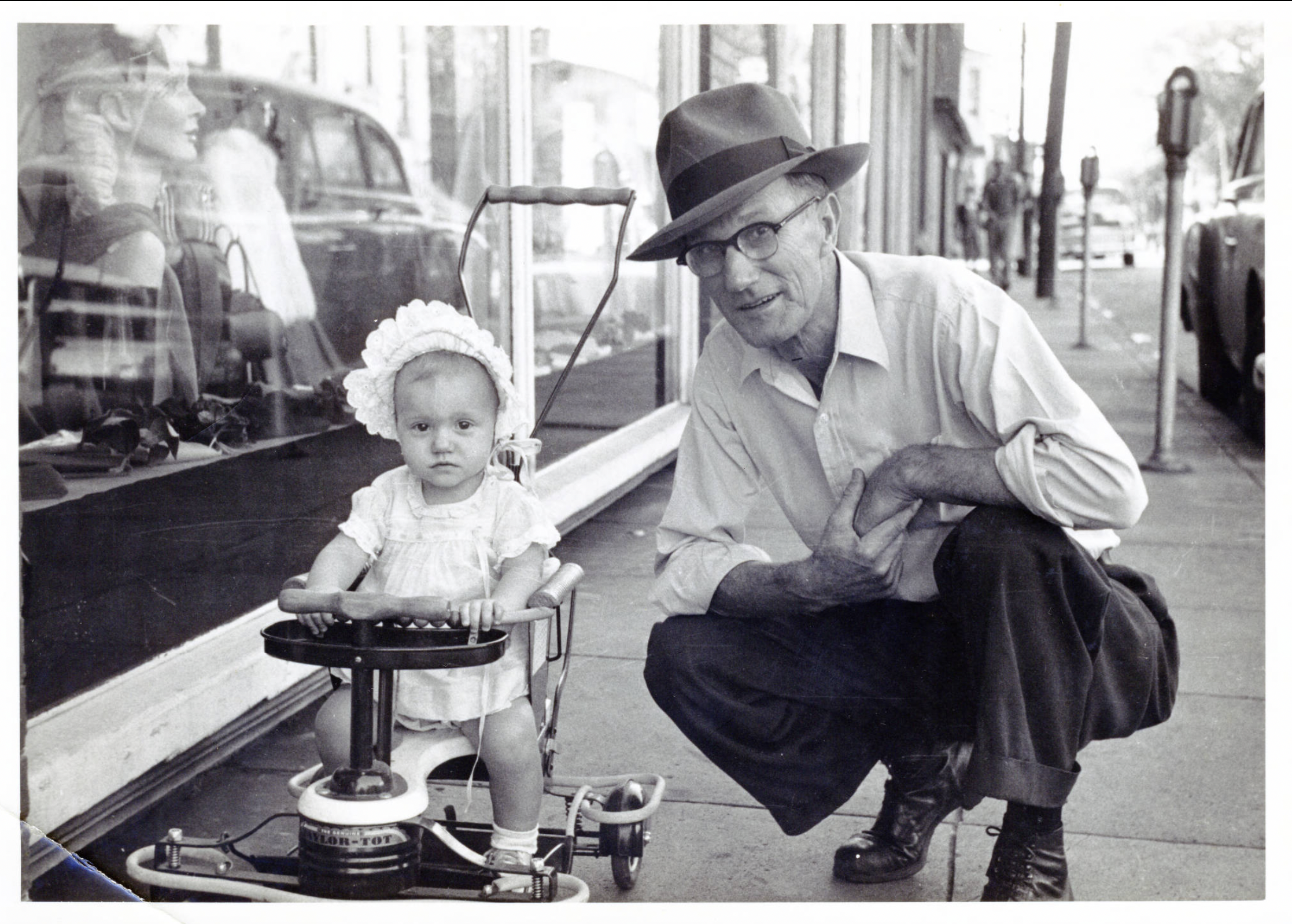 This unidentified man and child on her Taylor Tot posed in front of Kaplon's window was likely taken in the late 1950s judging from the window display we've seen in another photo.