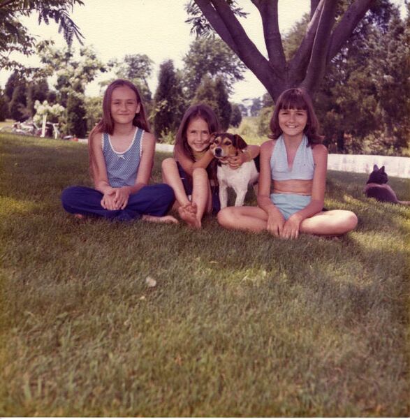 Three unidentified girls posed for Mr. Kaplon with a dog sometime in the mid-1970s? The trees remind us a bit of Rosemont.