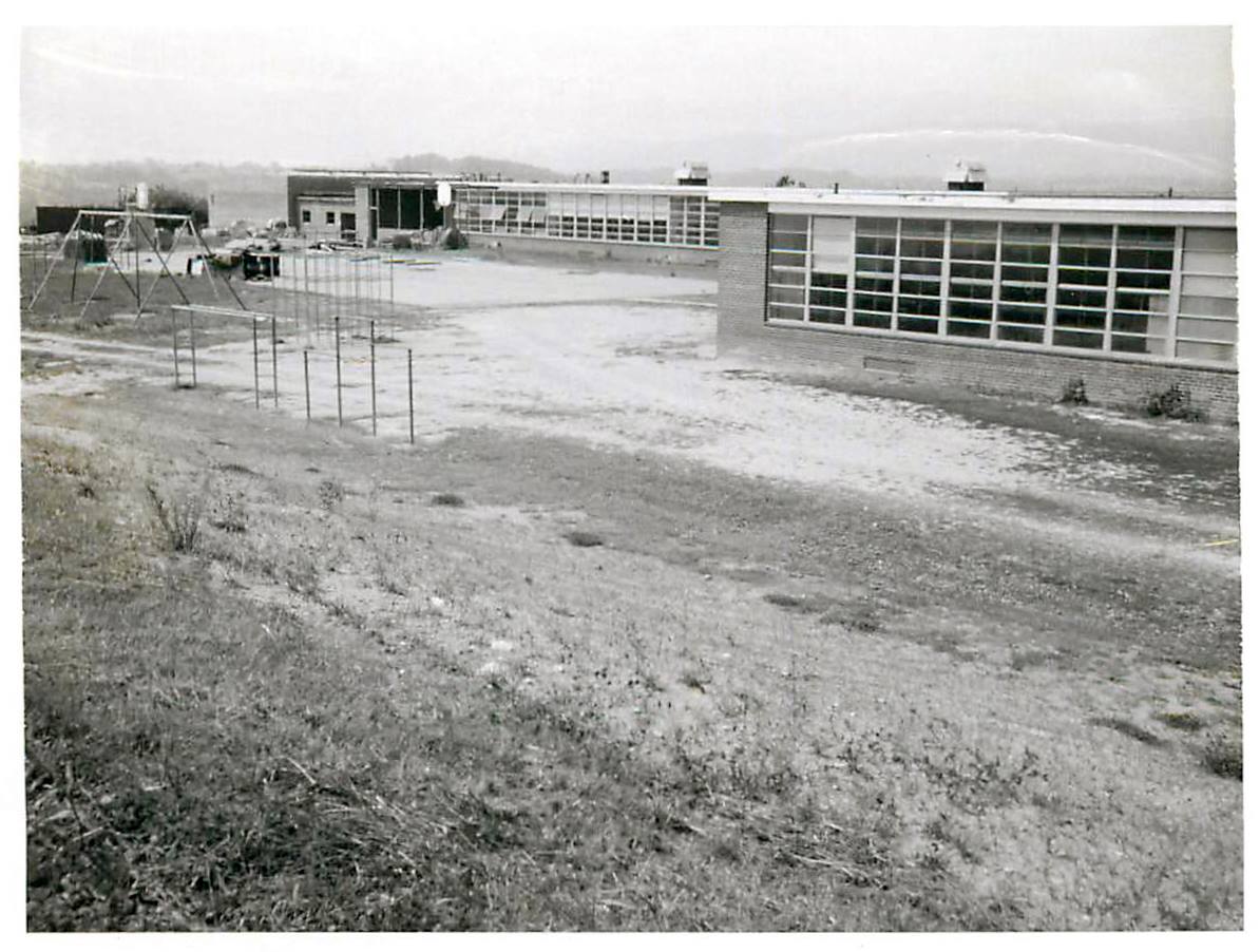 Expansion of Brunswick Elementary School. The photo was dated August, 1958. The new section appears to have been some new classrooms and the gymnasium at the south end.